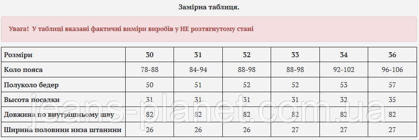 - Більш детальну інформацію про товар і про те, як підібрати правильно визначити свій розмір, дивіться на нашому сайті Jeans Planet.