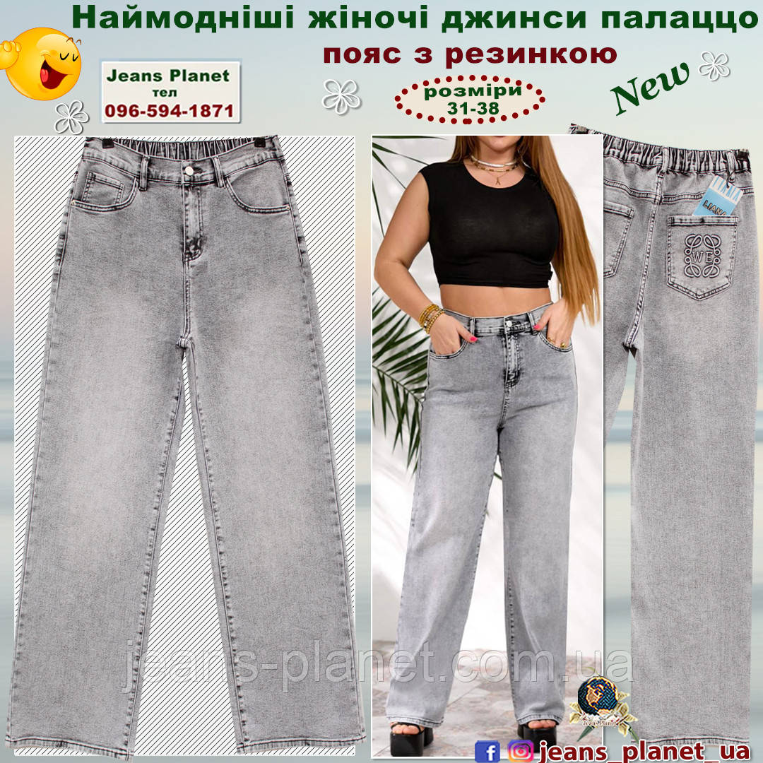 - Супер модна новинка сезону! Прямі вільні джинси палаццо з резинкою у задній частині пояса.