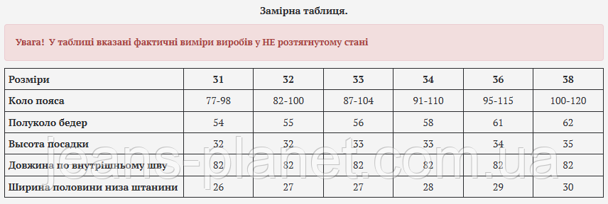 - Більш детальну інформацію про товар і про те, як підібрати правильно визначити свій розмір, дивіться на нашому сайті Jeans Planet.