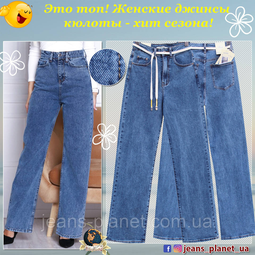 Модні жіночі прямі джинси кюлоти блакитного кольору Cudi 29 розмір