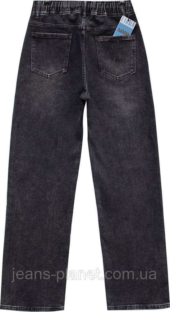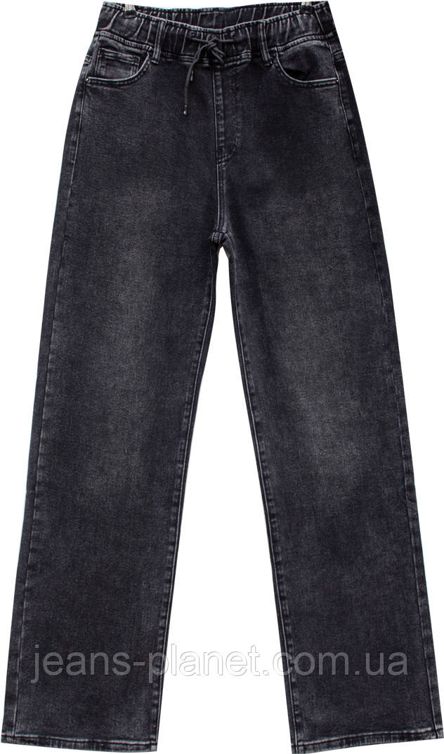- Нові моделі жіночої джинсової колекції "Весна — Осінь 2025-26"! Модна зручна модель палаццо пояс по боках з резинкою ошатного кольору — чорний графіт.