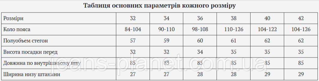 | Довжина по внутрішньому шву | 85 | 85 | 85 |