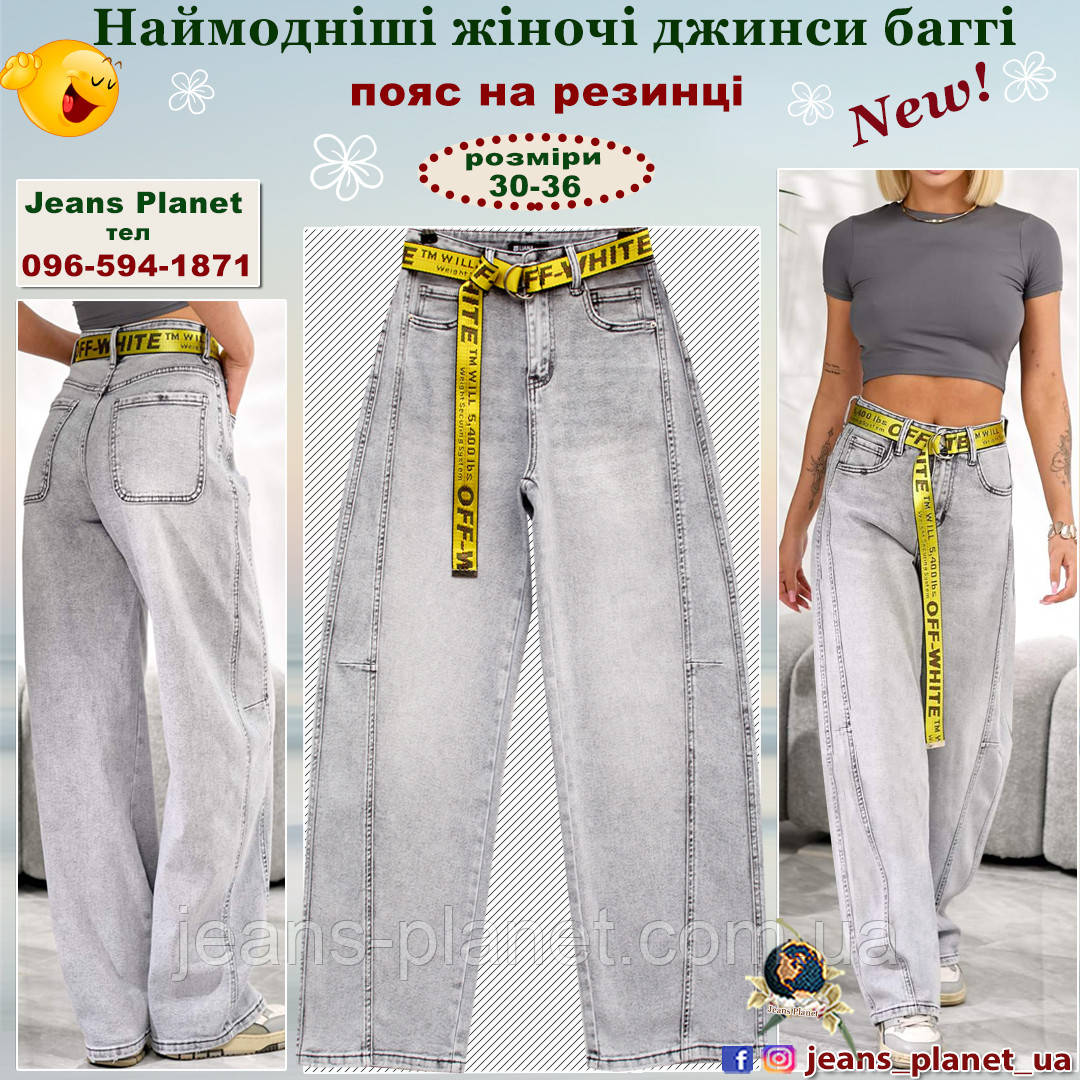 - Топ продаж сезону 2026! Джини баггі ошатного світло-сірого кольору з ефектними рядками на передніх штанинах.