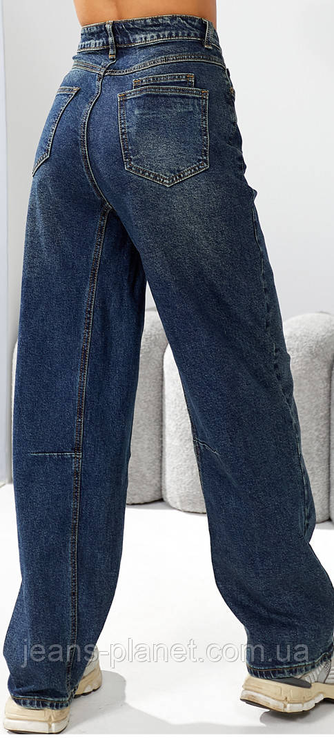 Модель: широка штанина, яка має трохи звужений низ, висока посадка, носяться з ременем на талії, або злегка приспущеними. В обох випадках виглядають дуже круто!