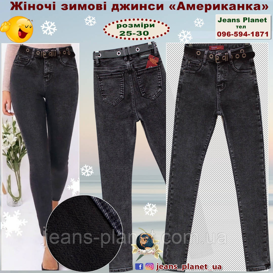 Джинси жіночі утеплені звужені з високою посадкою Американка