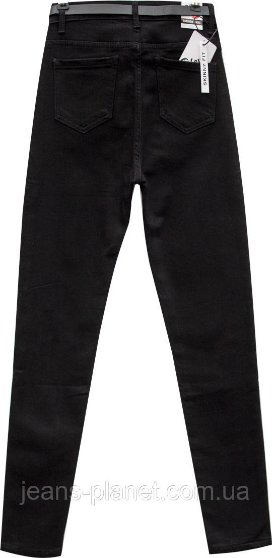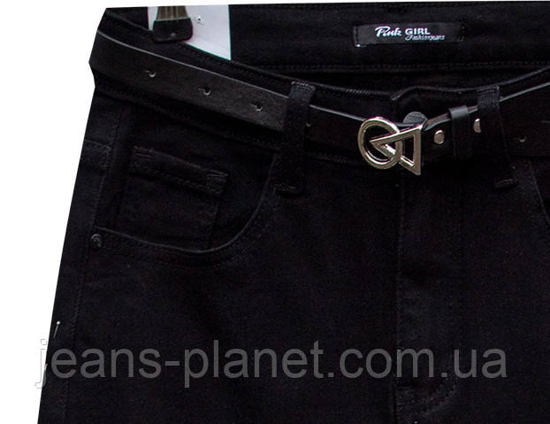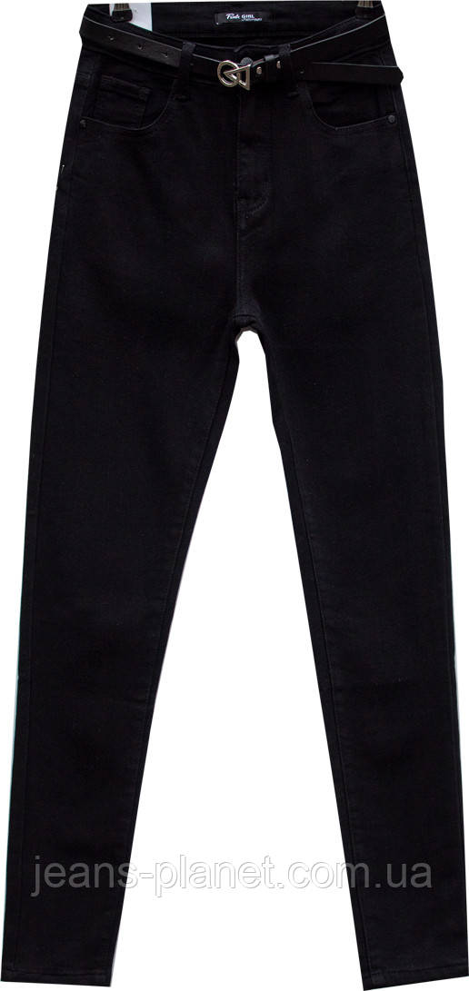 Джинси жіночі утеплені звужені з високою посадкою Pink Girl чорного кольору