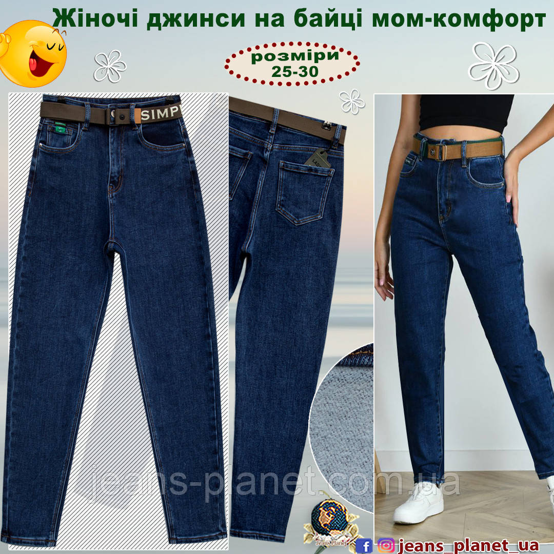 • Новинка сезону "Зима 2023"! Лідер зимової колекції джинсових виробів — утеплені м"якою байкою модні жіночі джинси синього кольору в стилі Mom Fit комфорт
