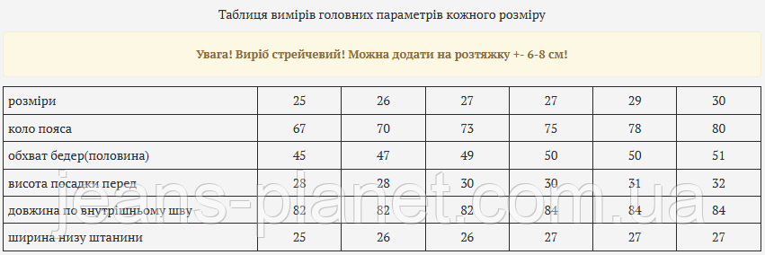 - Розмірний ряд 25-30, що відповідає украінським розмірам 44-50