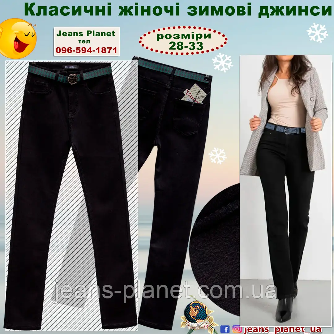 - Теплі класичні жіночі джинси на флісі чорного кольору.