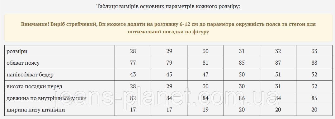 - Докладніше про товар і як підібрати розмір дивіться в нас на сайті Jeans Planet