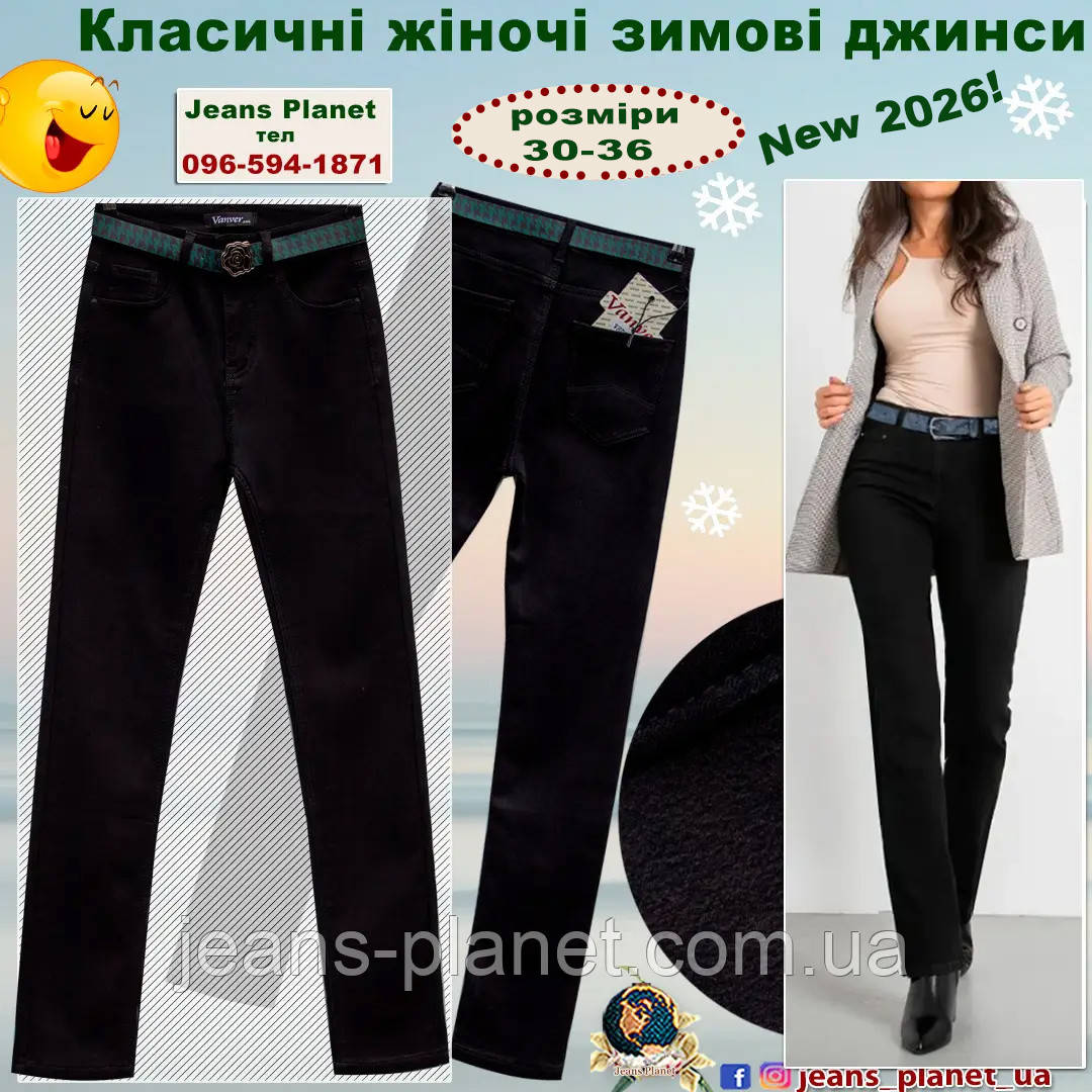 Жіночі прямі утеплені класичні джинси Vanver чорного кольору