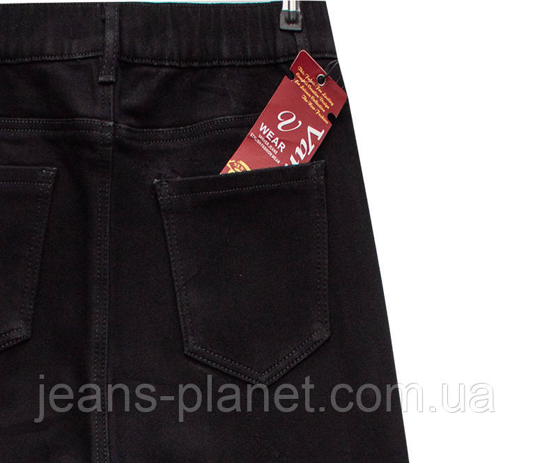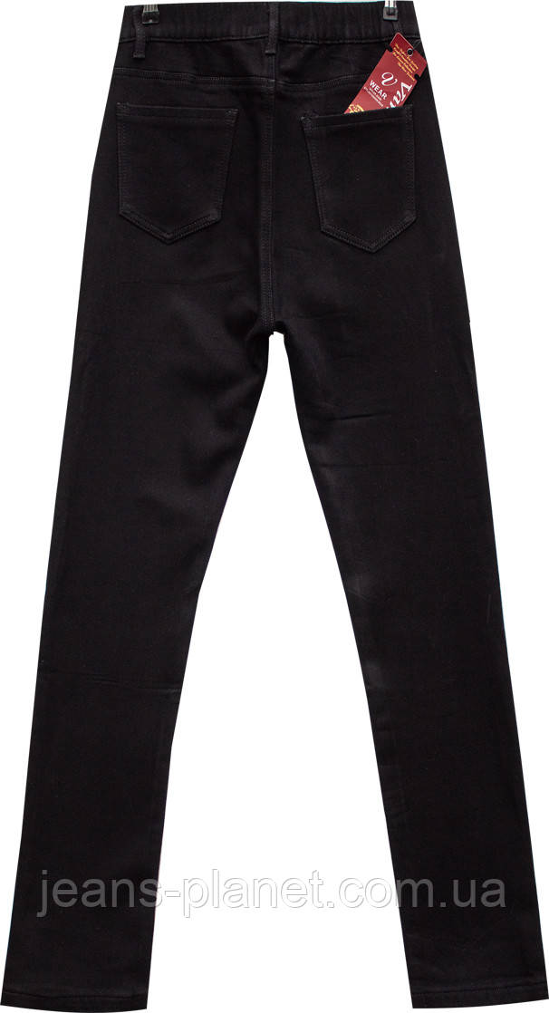 - Теплі класичні жіночі джинси на флісі чорного кольору з резинкою у задній частині поясу.