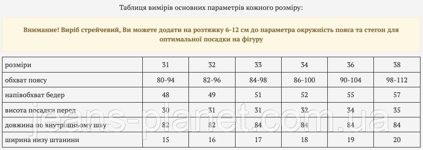 - Докладніше про товар і як підібрати розмір дивіться в нас на сайті Jeans Planet