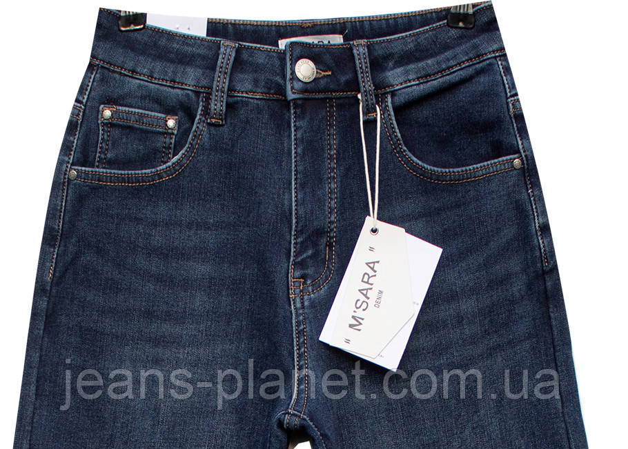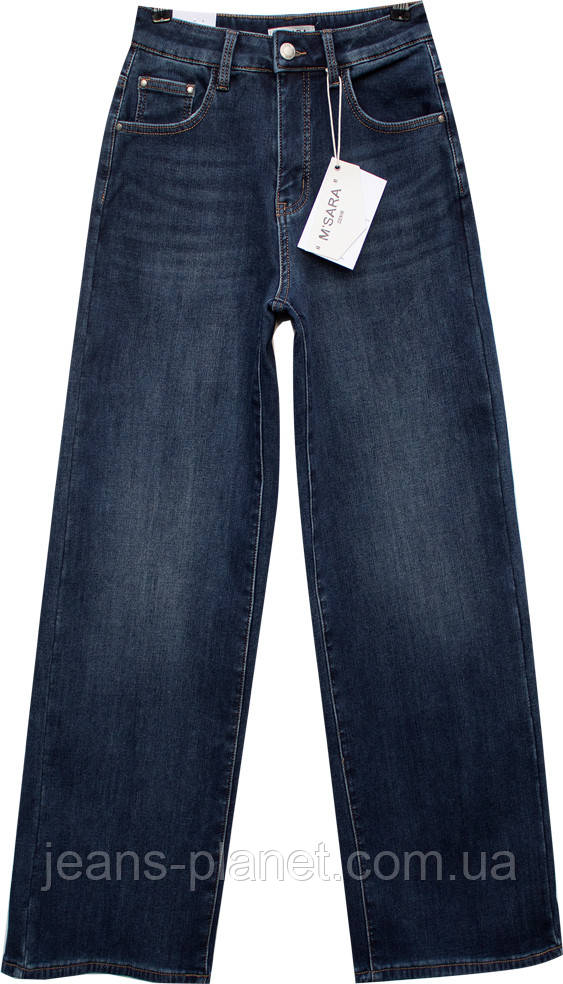 Зимові жіночі прямі джинси палаццо на хутрі M.Sara 2116