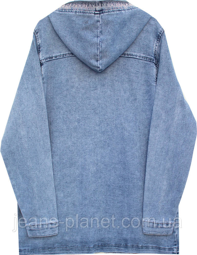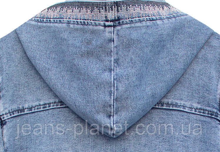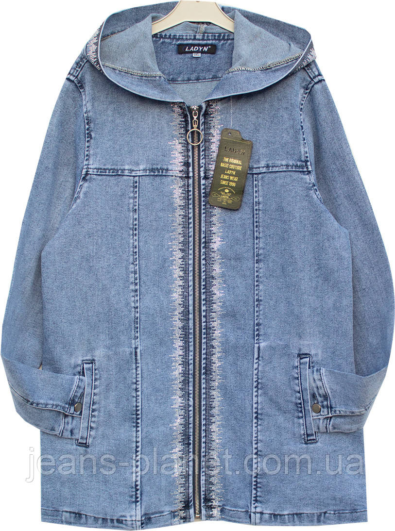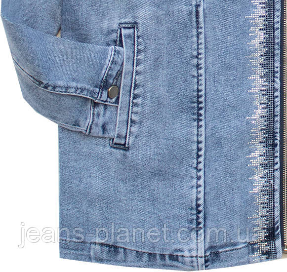 Довга жіноча джинсова куртка з камінцями на блискавці Lady N 896
