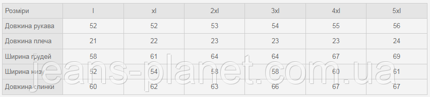 | Довжина рукава | 52 | 52 | 53 | 54 | 55 | 56 |