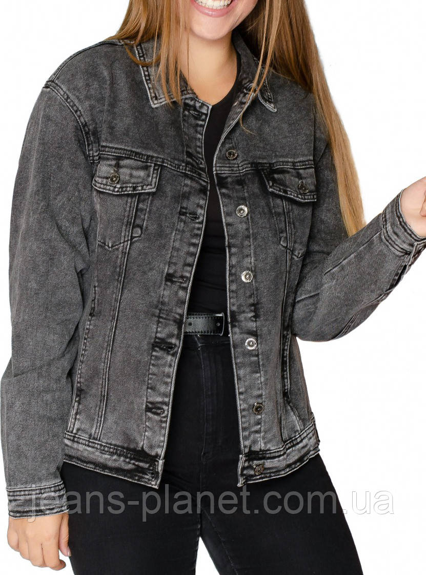 • Новинка "Осінь 2022"! Жіноча джинсова куртка модного кольору сірий графіт.