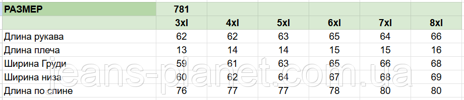 - Розмірний ряд 3XL-8XL, що відповідає українським розмірами 52-60