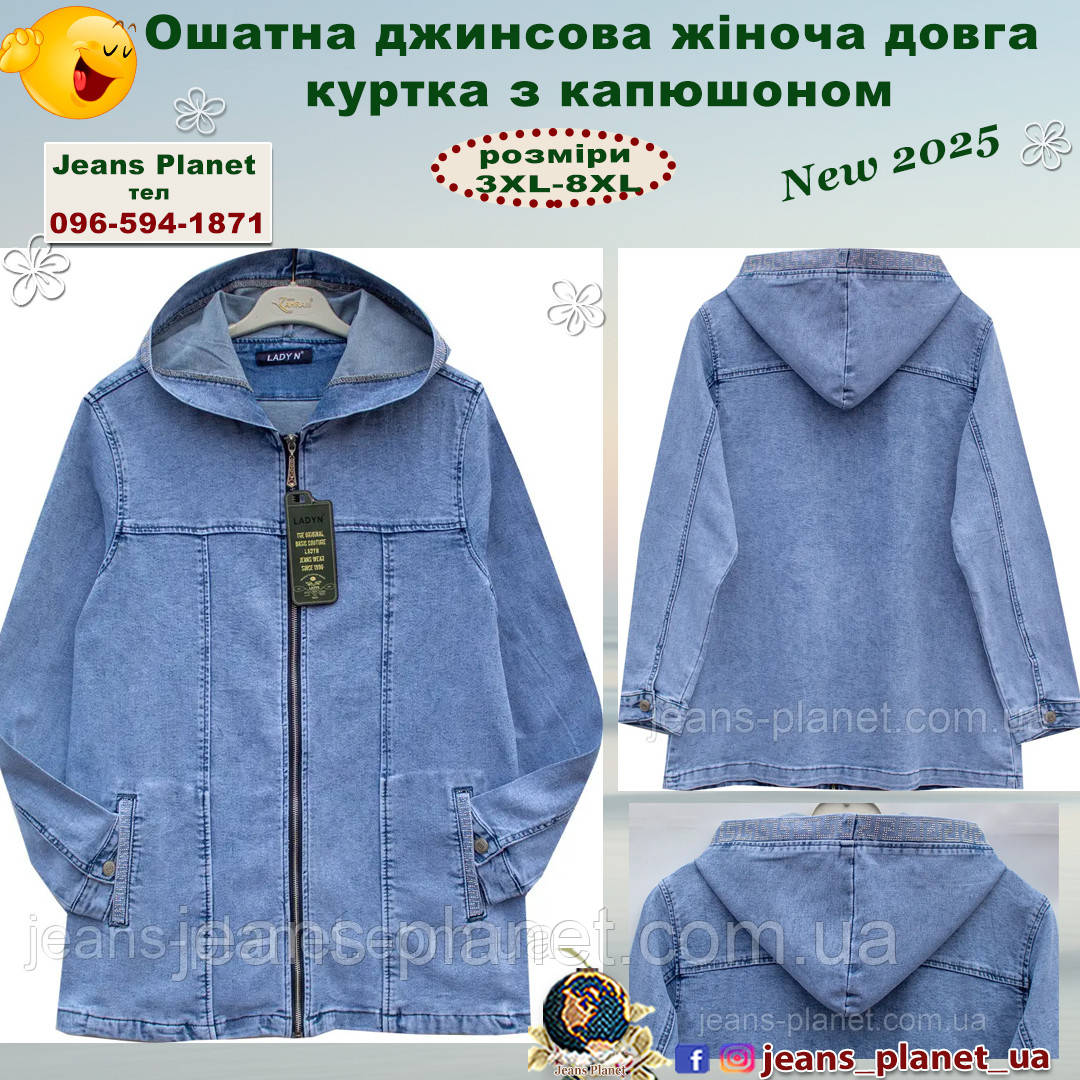 - Стильна джинсова куртка блакитного кольору в українських розмірах 52-60