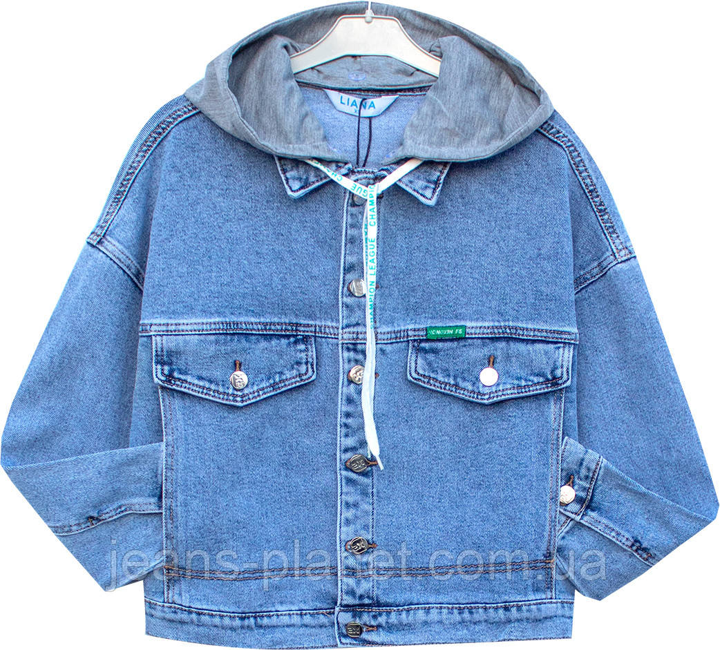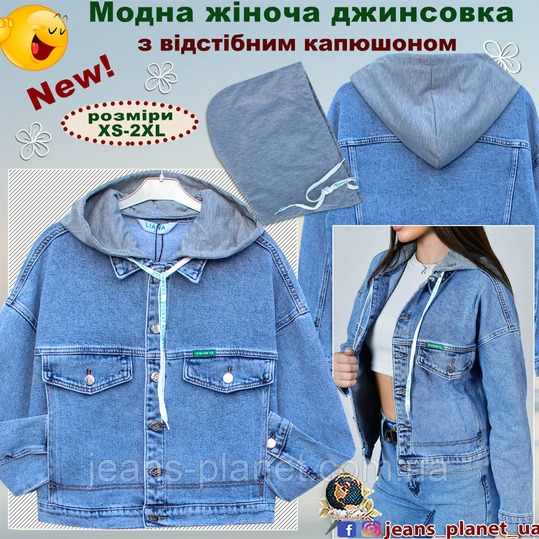 Модна жіноча джинсова куртка оверсайз з відстібним капюшоном