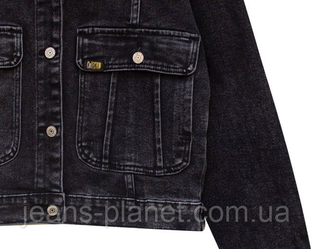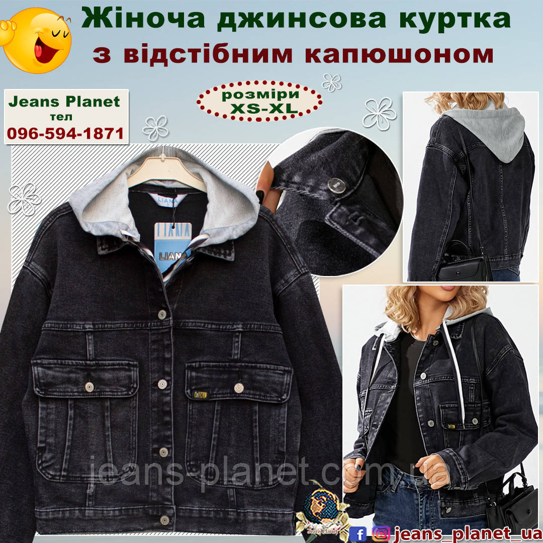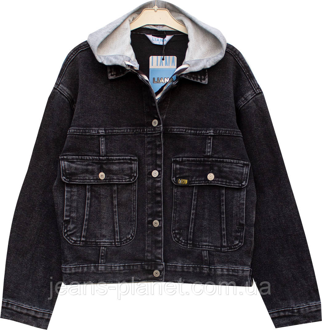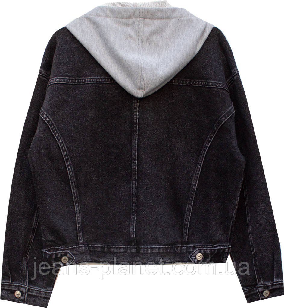 Модна жіноча джинсова куртка оверсайз зі знімним капющоном колір графіт Liana
