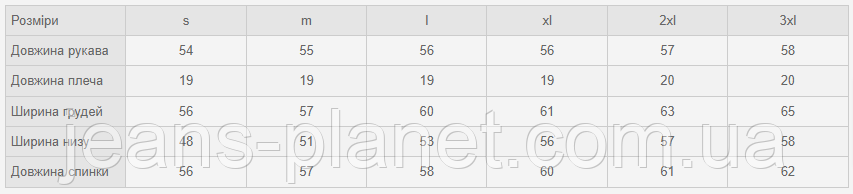 | Довжина рукава | 54 | 55 | 56 | 56 | 57 | 58 |