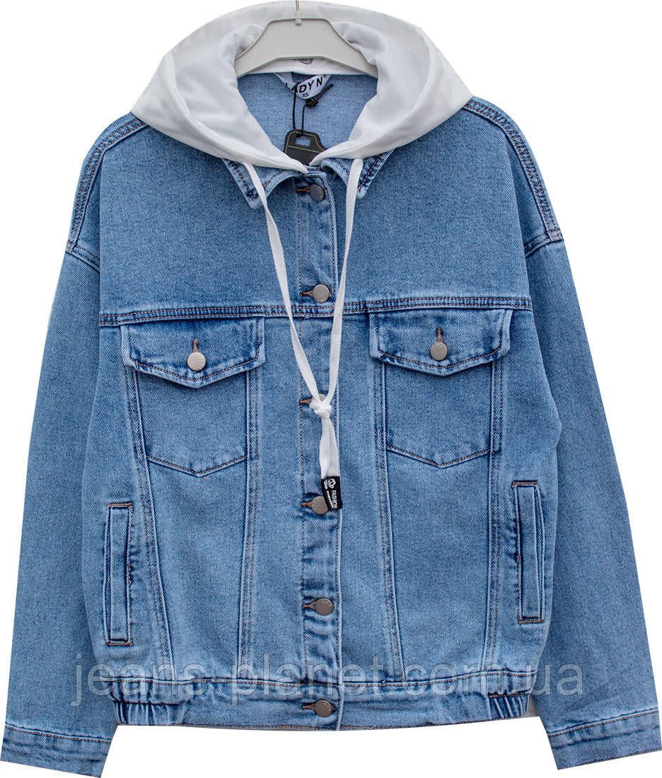 Модна жіноча джинсова куртка оверсайз з відстібним капюшоном