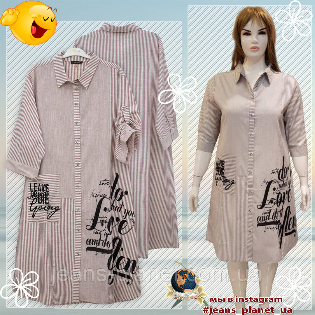 Модне літнє плаття-сорочка льон розмір 66 український