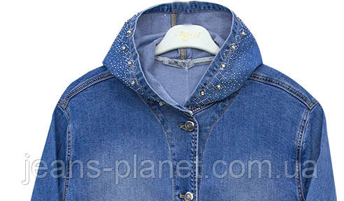 Модний жіночий джинсовий кардиган з капюшоном розмір 2XL (український 50-52)