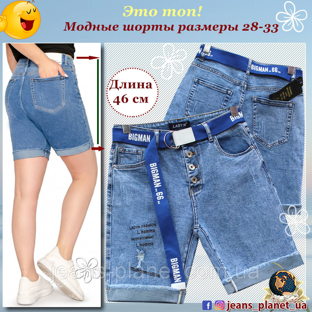 Модні жіночі шорти-бойфренди середньої довжини на гудзиках з довгим поясом