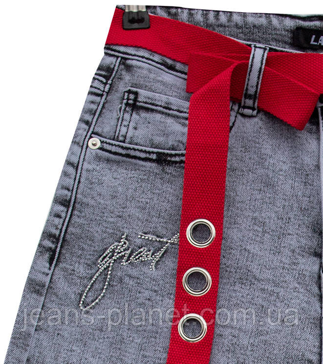 • Дизайн: під правою передньою кишенею та на відвороті лівої штанини елегантні написи, вишиті сірою шовковою ниткою і викладені дуже дрібними металевими стразиками, з елементами бренду виробника. Укомплектовані оригінальним поясом-ременем.