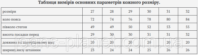 • Більш детальну інформацію про товар і про те, як правильно визначити свій розмір, дивіться на нашому сайті Jeans Planet.