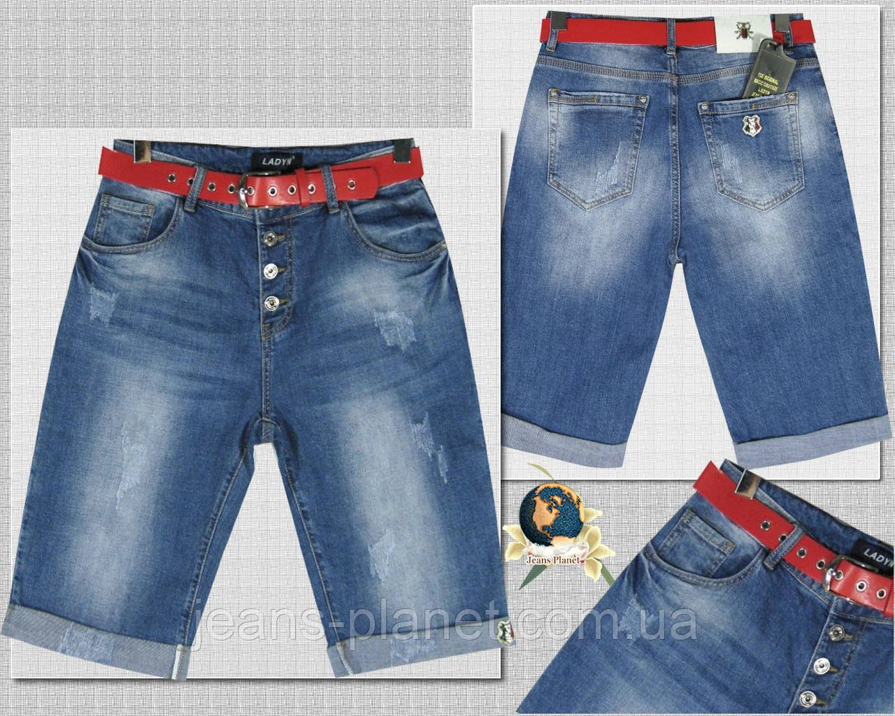 Шорти жіночі бойфренди подовжені на ґудзиках із червоним ременем батал