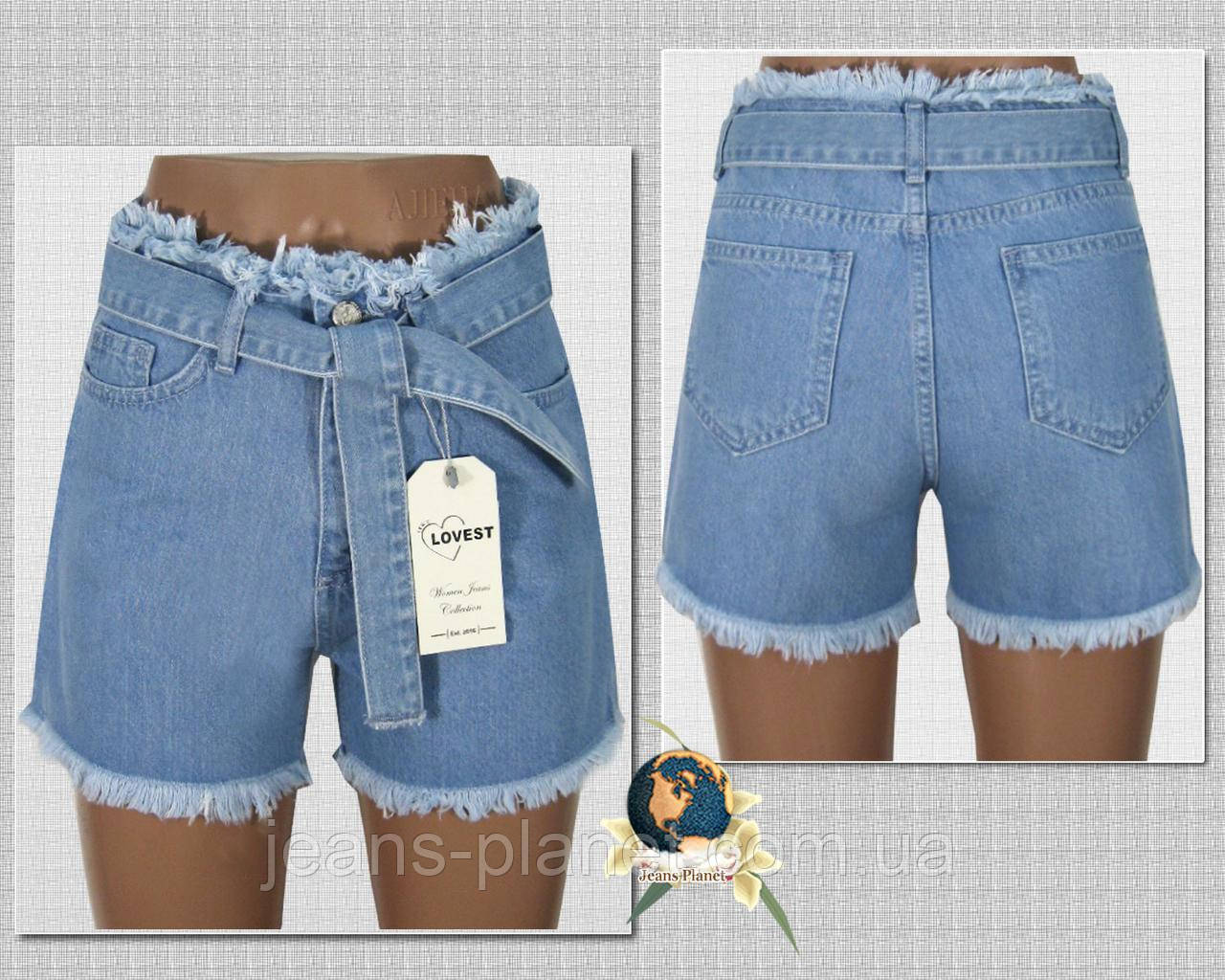 Шорти жіночі джинсові короткі Мом із бахромою і джинсовим поясом