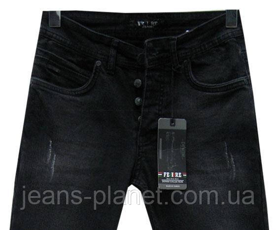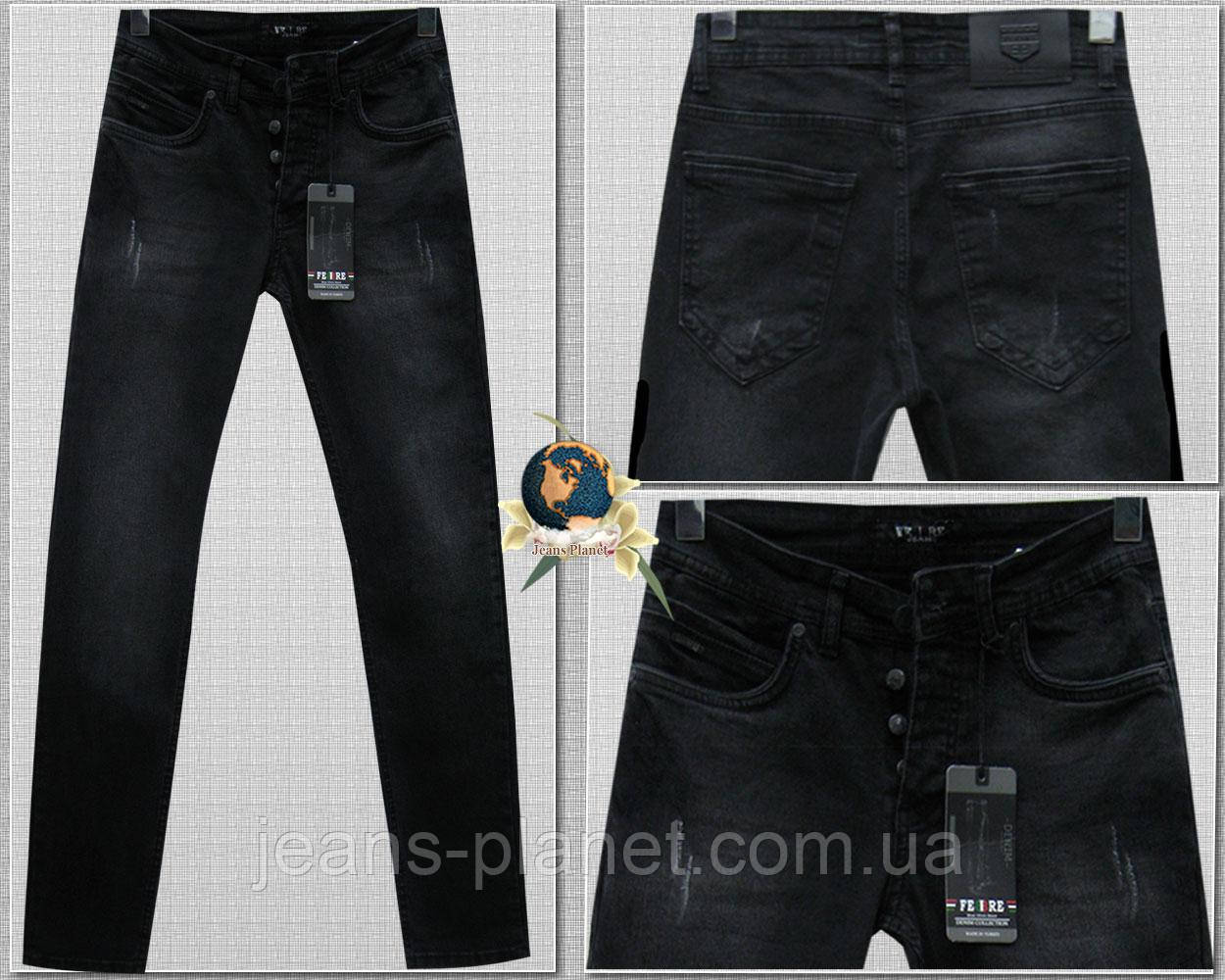 Джинси чоловічі модні завужені Febbre чорні на ґудзиках 30-й розмір