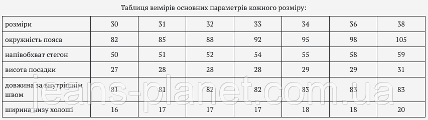 - Докладна інформація про товар і про те, як правильно визначити свій розмір, дивіться на нашому сайті Jeans Planet.