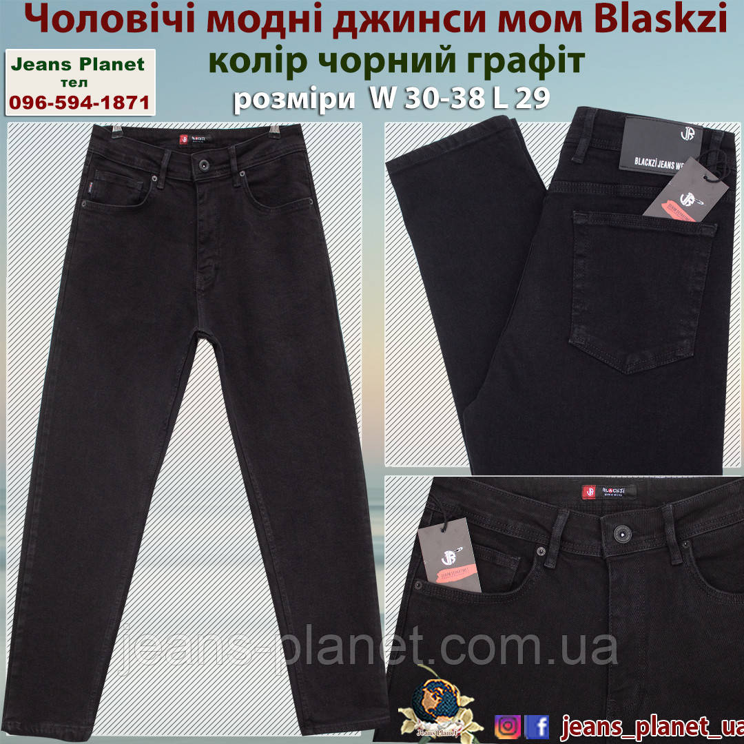Модні чоловічі молодіжні джинси мом Blackzi колір чорний графіт 6076