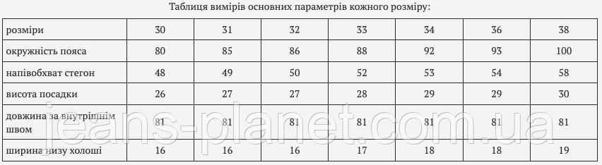 - Докладна інформація про товар і про те, як правильно визначити свій розмір, дивіться на нашому сайті Jeans Planet.