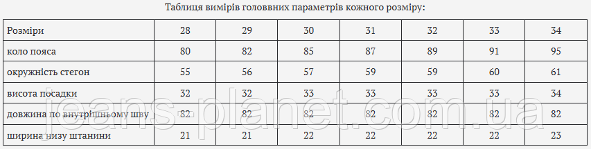 Розміри 28 29 30 31 32 33 34