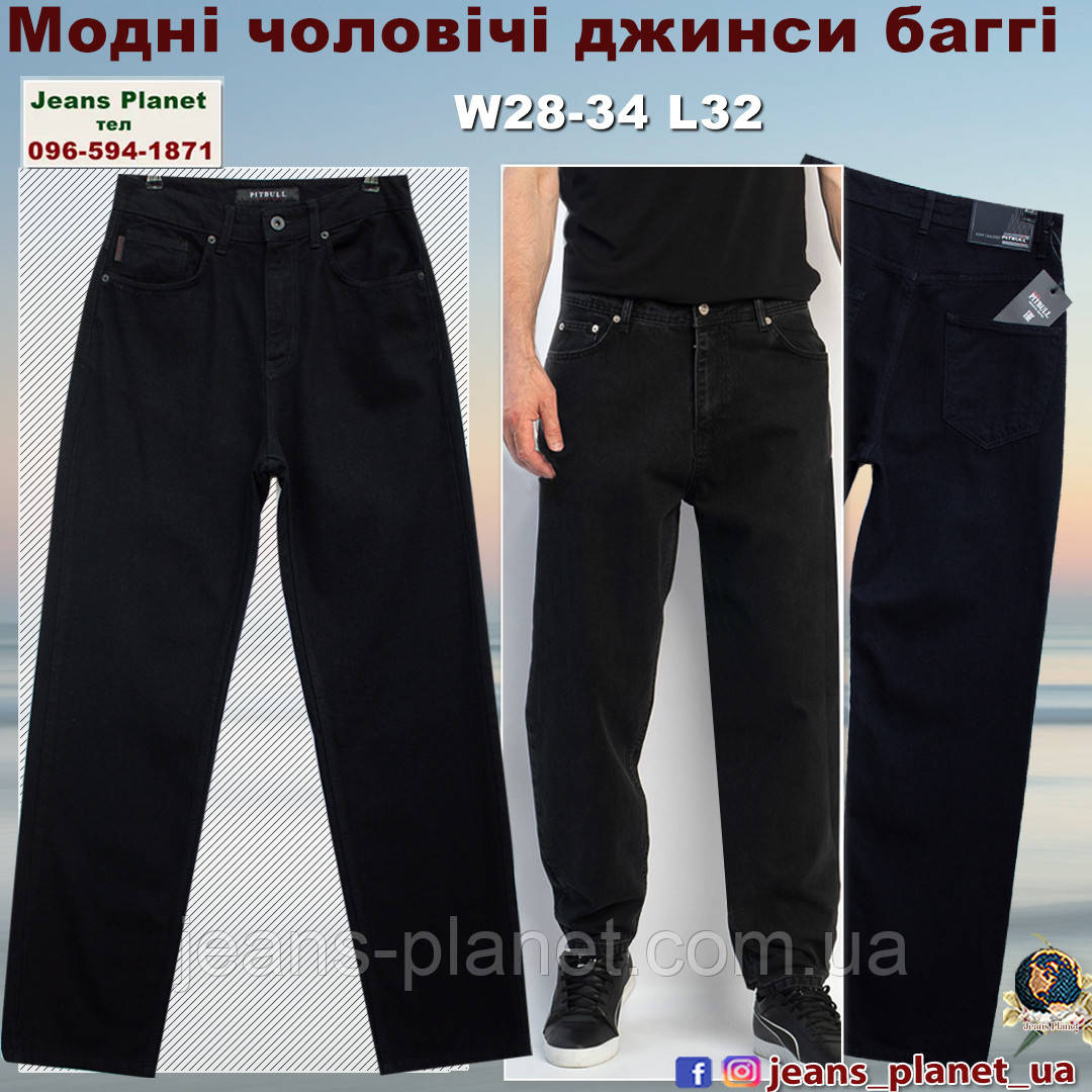 Наймодніші чоловічіі джинси баггі чорного кольору Pit Bull