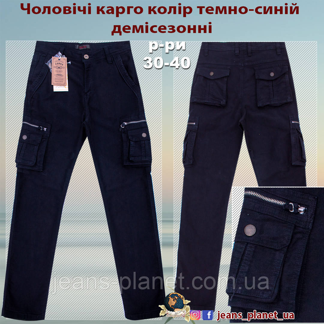 Чоловічі джинси карго з бічними кишенями темно-синього кольору Forex