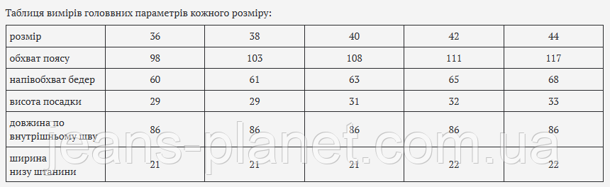| ширина низу штанини | 21 | 21 | 21 |