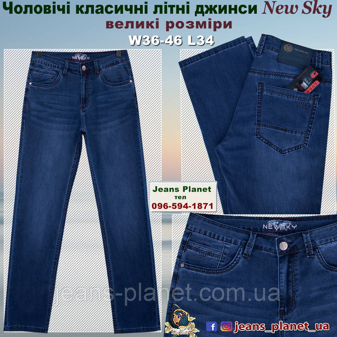 Джинси чоловічі класичні літні темно-синього кольору New Sky великі розміри