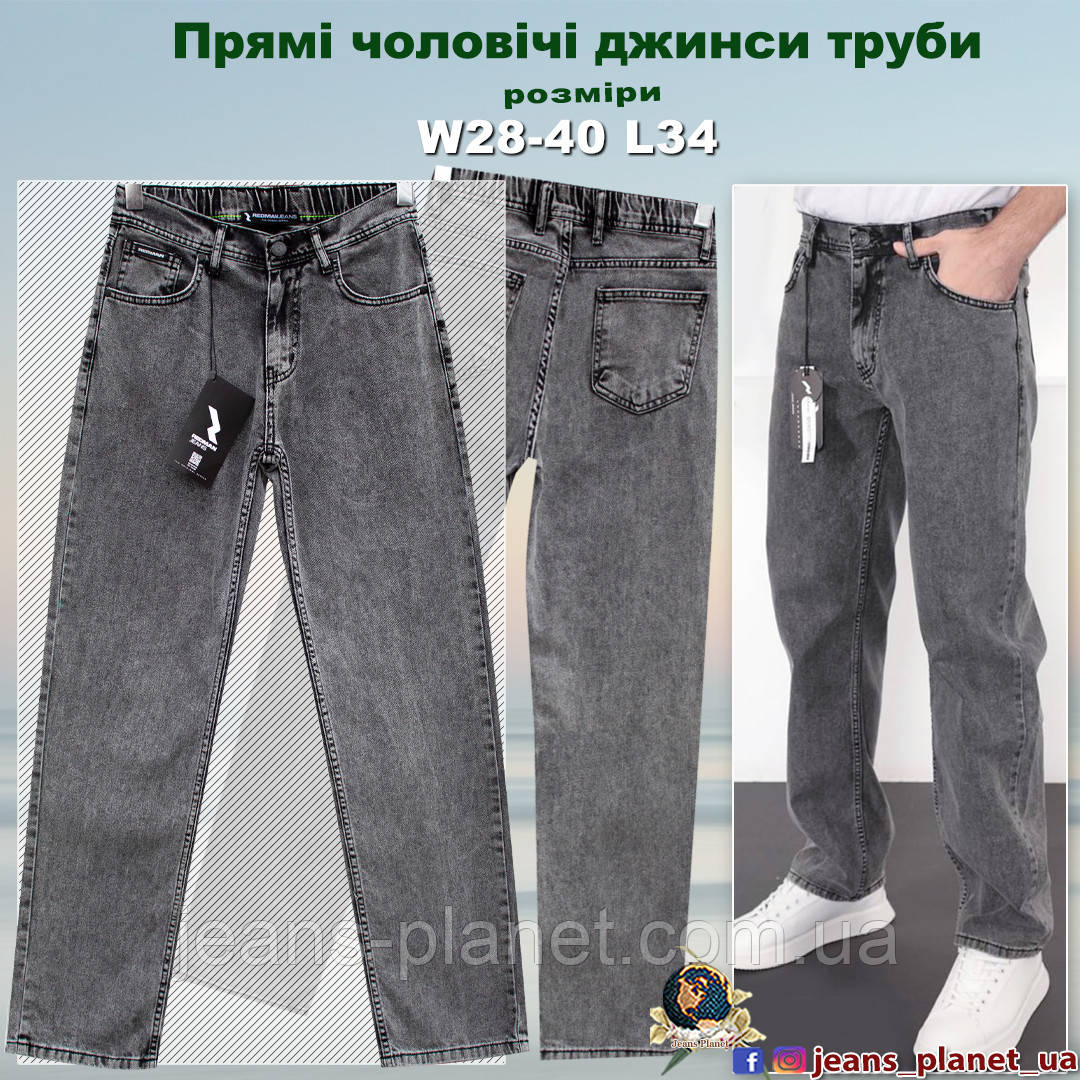 Джинси чоловічі прямі труби сірий котон в поясі резинка