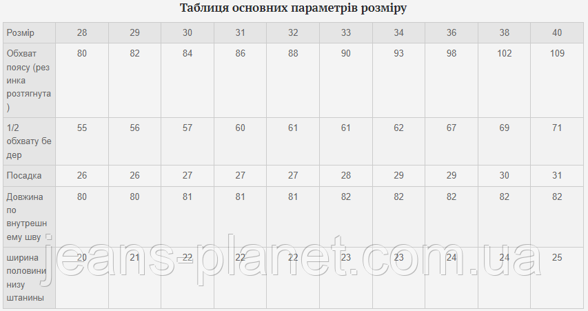 Як користуватися таблицею дивіться в нас у Приміряній в розділі "Меряємо не себе, а свої улюблені джинси"