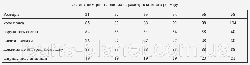 | Розміри | 31 | 32 | 34 |