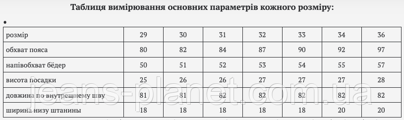 • Детальну інформацію про товар і про те, як підібрати розмір цього виробу, дивіться у нас на сайті Jeans Planet.