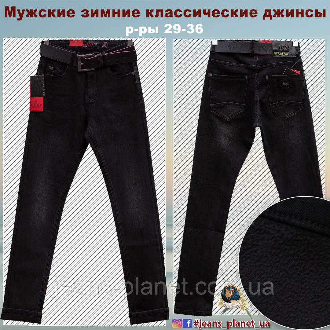 Джинсы мужские утеплённые классические Resalsa чёрно-серого цвета