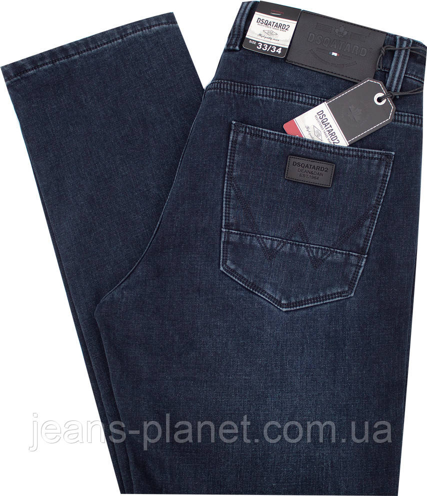 Чоловічі класичні утеплені джинси темно-синього кольору Dsqatard 2286
