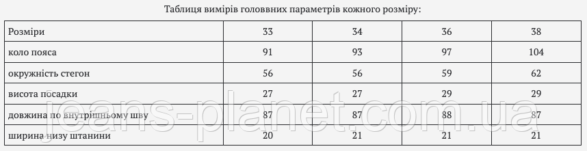 Розміри 33 34 36 38